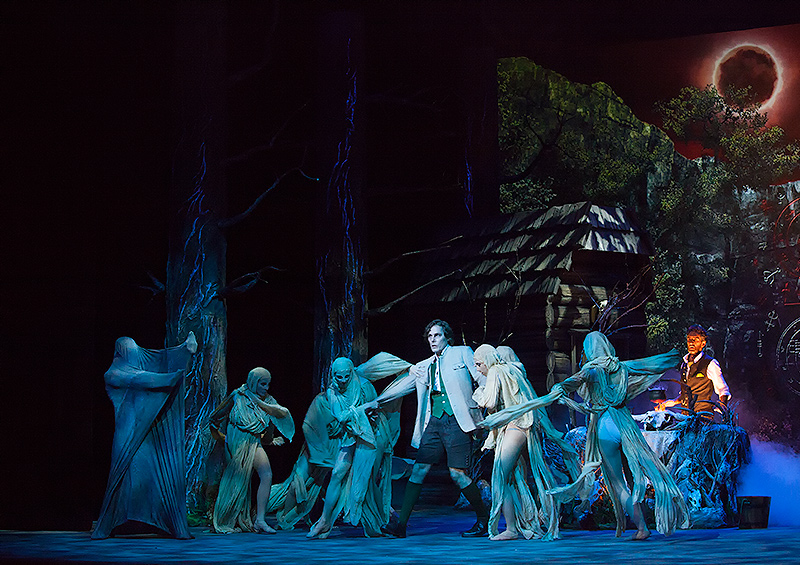 Wolfgang Pampel Voice Over Thomas Zisterer Fürst Ottokar Franz Födinger Kuno, Erbförster Regina Riel Agathe, seine Tochter Theresa Grabner Ännchen, eine Cousine Agathes Sebastian Soulès Kaspar, erster Jägerbursch Reinhard Alessandri Max, zweiter Jägerbursch Oliver Baier Samiel Gregor Loebl Ein Eremit Thomas Zisterer Killian, ein Bauer Thomas Nestler Erster Jäger Umud Gorji Zweiter Jäger Ekaterina Polster Kellnerin Patric-Pascal Bonnet/Eduard Equiluz/Elias Kelta Sepperl und Fritz, Bauernburschen Damenchor der Bühne Baden 8 Jungfern